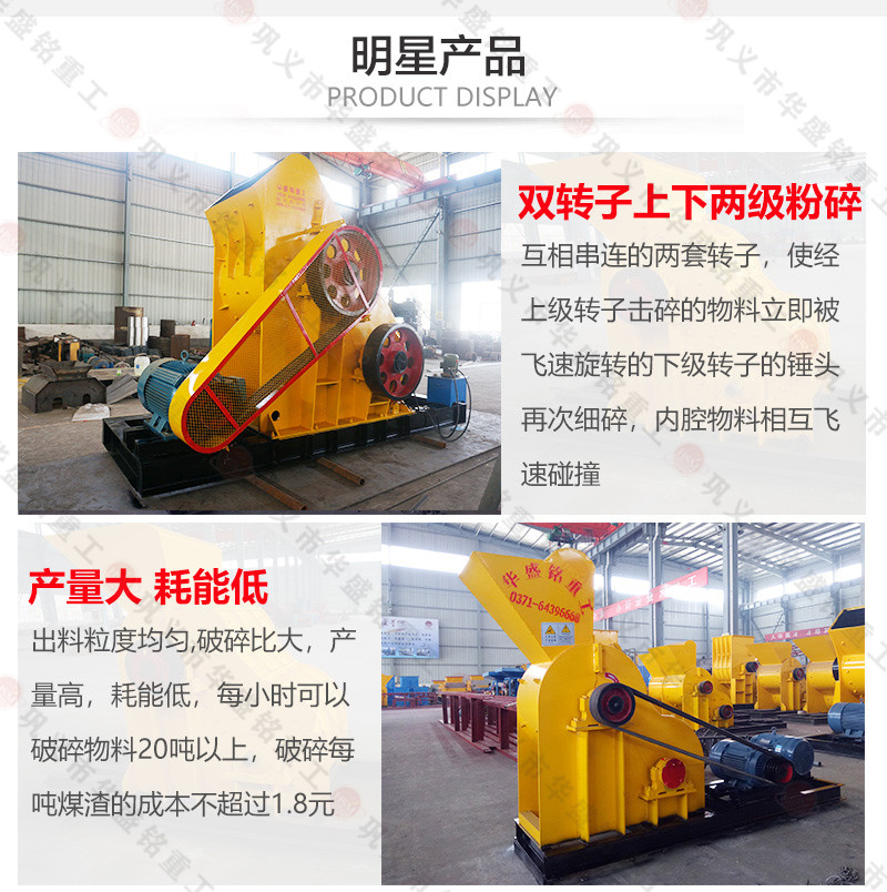 雙級粉碎機 又稱無篩底雙級破碎機,是在老式錘式破碎機的基礎上改進而來的,是一種結構較新的煤矸石破碎機,是洗煤石和磚廠的專用機型。該機能很好地解決露天生產中物料含水量高的缺